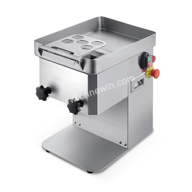 La máquina cortadora de carne de acero inoxidable de Newin es ideal para usar y también es asequible. Las siguientes son las características importantes de esta máquina. Con su impresionante botón de parada de emergencia y su cubierta de seguridad, esta máquina cortadora de carne es realmente una excelente opción a considerar. Sin embargo, esta máquina de Acero Inoxidable nunca comenzará a funcionar sin tapa o sin tener la tapa colocada en la posición correcta. En verdad, esta máquina es la solución más eficaz para los usuarios que deseen procesar carnes a granel.