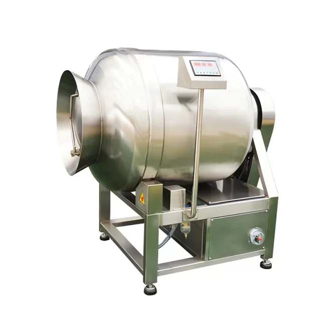 La máquina mezcladora de carne y salchichas para marinar carne y vaso al vacío está en estado de vacío, utiliza el principio de impacto físico, dejando que la carne se mueva hacia arriba y hacia abajo en el tambor, se golpee entre sí, golpee, masajee, efecto encurtido, la carne salada La flexibilidad uniforme de los productos adhesivos para la carne, el giro y el masaje pueden convertir las proteínas de la carne en proteínas solubles en agua, de fácil absorción, agregar material (almidón, etc.) y la proteína física puede integrarse mutuamente para lograr que la carne sea tierna, de buen sabor y con una alta tasa de exportación. .