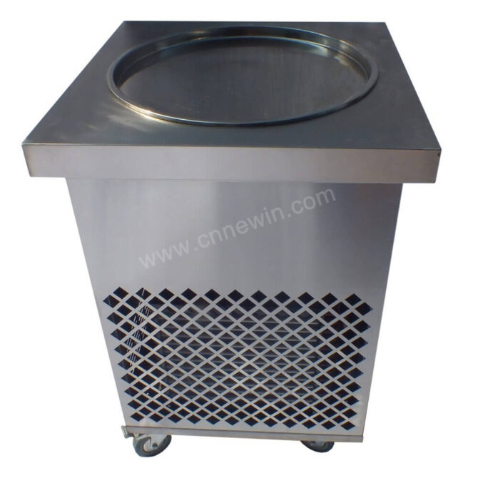 A pan fry fagylaltgép egy új típusú jégkeverő gép, amely kompresszorból és elpárologtatóból készül. Ez a hőmérséklet gyors csökkenését okozhatja. A Fry fagylalttekercs népszerű és divatos falat az emberek körében. Ezért ezek a fajta gépek nagyon népszerűek a bárban, éjszakai piacon és étteremben, ahol könnyen kezelhetők és különféle csinos fagylaltvirágok készíthetők.