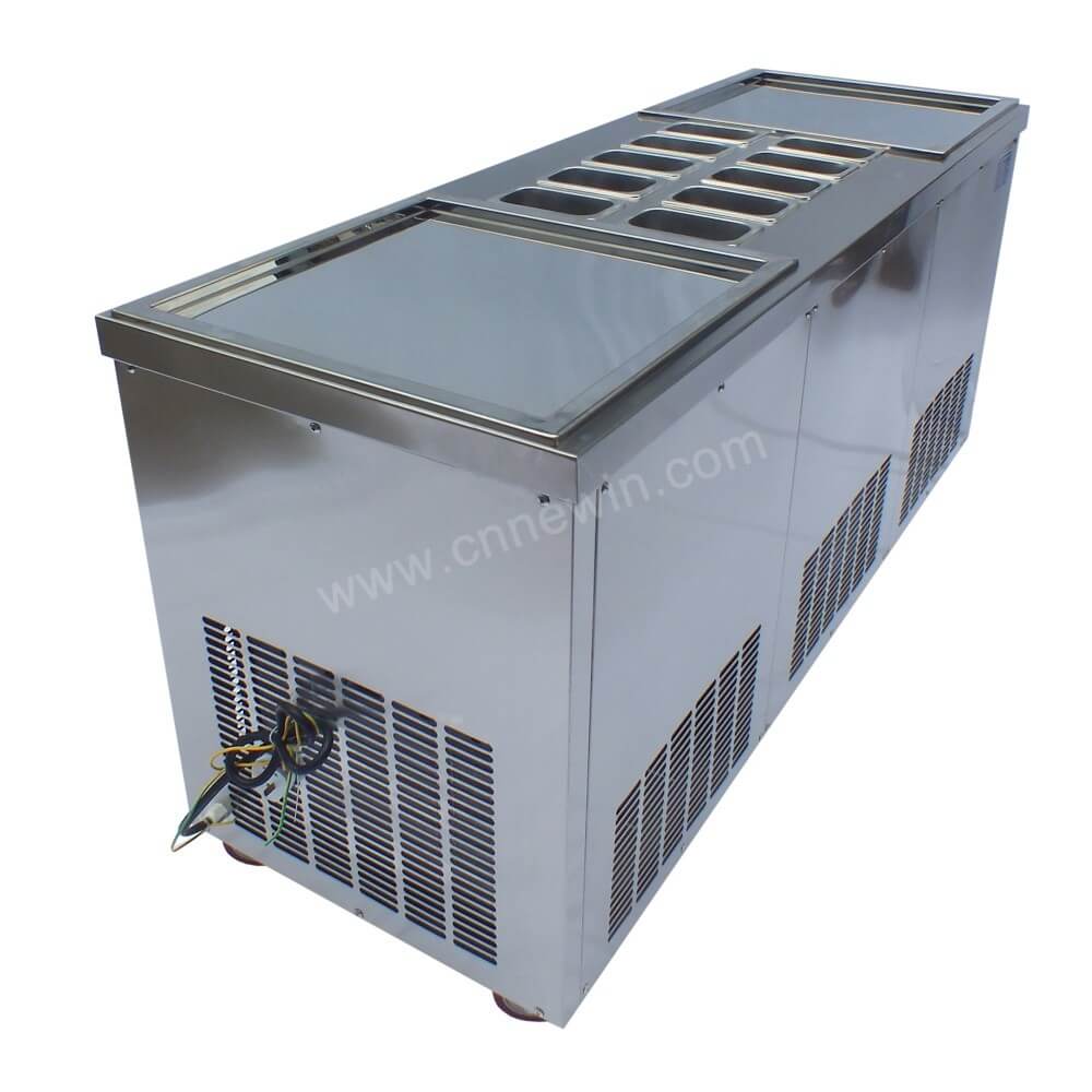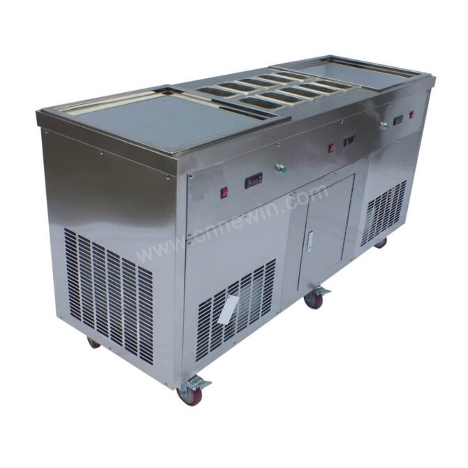 Mesin es goreng ini memiliki 2 panci persegi ditambah 10 gerbong, Gunakan teknologi pendingin tercanggih pada mesin kami untuk menawarkan desain luar biasa dan kinerja bagus. Ukurannya ringkas, ringan, mudah dipindahkan, dan aman dioperasikan. Mesin ini dilengkapi dengan tampilan ala Eropa dan Amerika. Ini tahan lama dan cocok untuk berbagai lingkungan.