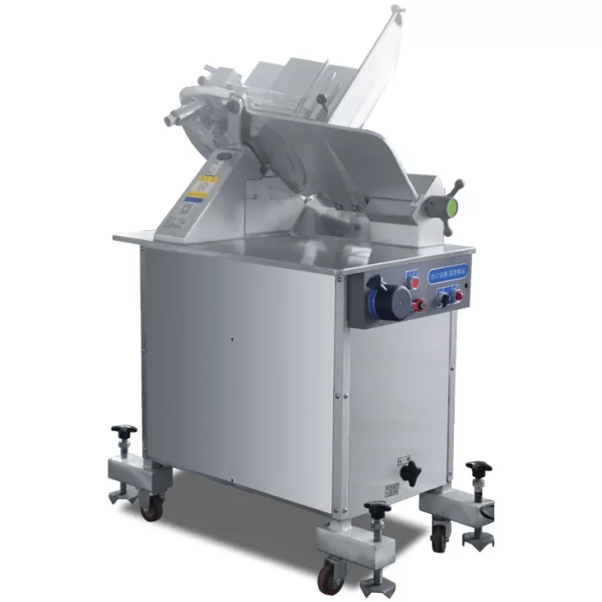 - Meja daging besar: Dua gulungan daging dapat dipotong secara bersamaan untuk meningkatkan efisiensi kerja, teknologi pemandu gravitasi, lebar irisan, besar 335mm