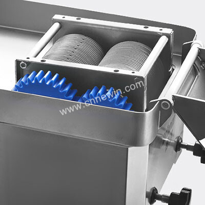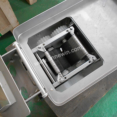 Features: if the meat pieces of different thickness are processed, only the corresponding tools can be replaced. The machine is equipped with a safety switch. When the tool is exposed, the machine cannot be activated by self-locking.