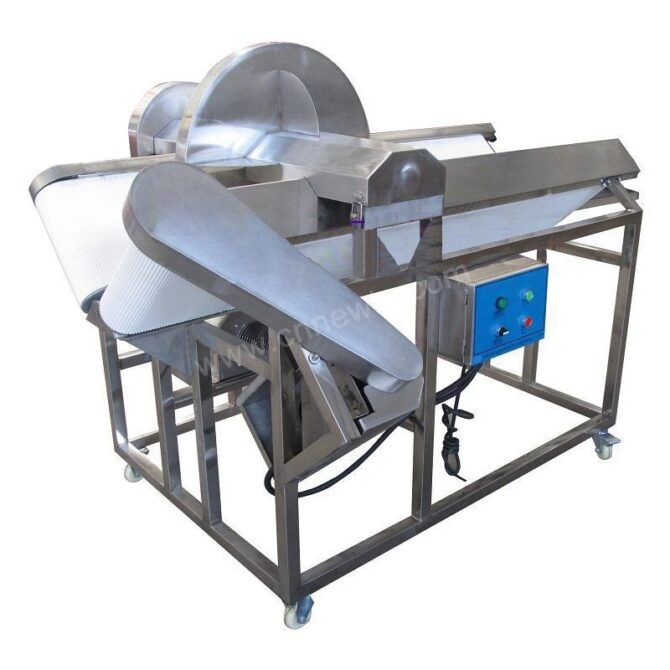 The automatic fruit and vegetable cutting machine is equipped with a V-shaped conveyor belt. The material is conveyed by conveyor belt. The cabbage is evenly cut into two halves from the middle. The design is reasonable and professional. The smaller materials can also be divided equally. The output is small, the scrap is low, and the performance is reliable. It is easy to operate and is mainly used for the initial processing of vegetables such as cabbage and melon. It is indispensable equipment for the processing and production of pickles, pickles, and kimchi.