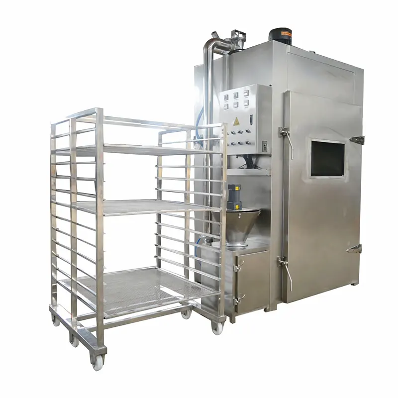 The cold smoking house uses a 304 stainless steel structure, which has the functions of smoking, drying, cooking, cleaning, baking, and so on. Users can choose reasonable process procedures according to the different processing requirements of the product, and realize the purpose of curing and sterilizing, using PLC automatic programmable control, easy to operate, and simple. The three processes of drying, cooking, and smoking can be automatically converted according to the set time.
