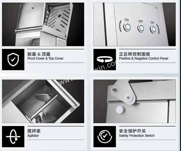 - Gearbox with double sealing system IPX5 air-cooled motor, suitable for continuous work.