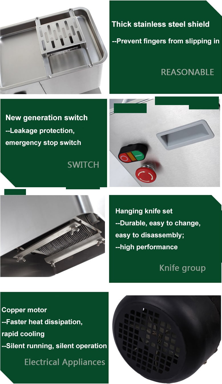 - The machine is a fresh meat slicer, and it can not cut frozen meat and meat with bone, so as not to damage it.