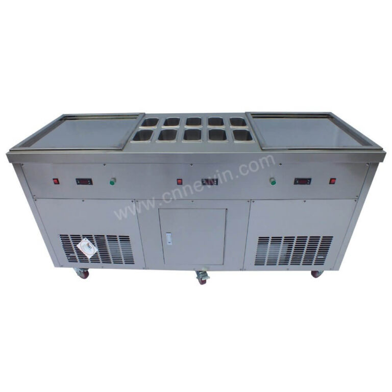 4. This fry ice cream machine roll is equipped with the universal steering wheel, convenient to move, with the installation of ground wire, prevent electrical;