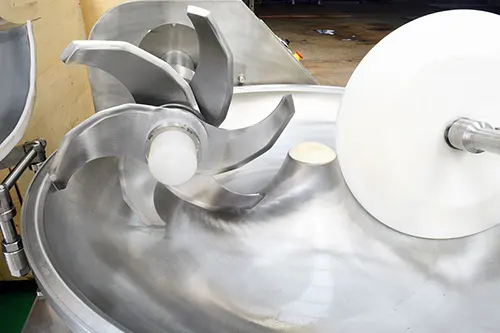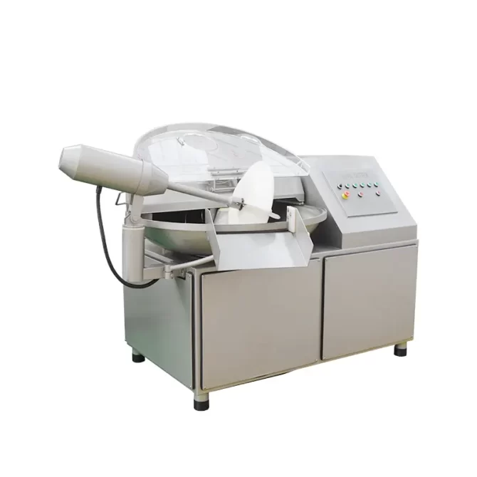 Meat Bowl cutter Price makes use of a high-speed rotating kopis chop cutting effect, Fine Chop meat, minced meat, fat, and other main raw materials into chopped meat or meat slurry, at the same time, mix other raw materials such as water, Borneol, and accessories uniform mixing to milk form. Running time can be shortened, reduce emissions, maintain the natural color of fillings, flexibility, production rate, and product shelf life.