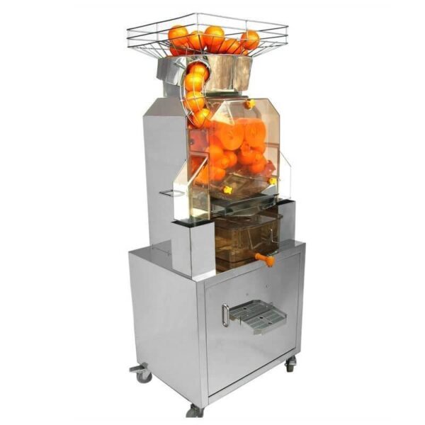 This Orange juicer adopt squeeze style, orange after disinfection, rinsing, direct access to this machine, automatic peeling, juicing, filtering, are now pressing and now drinking, in the orange juice no skin, no wire, seedless, no residue, excellent taste.