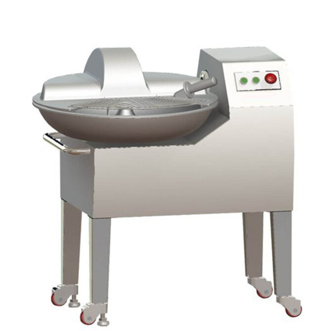 碗切机利用刀盘高速旋转,将肉及辅料在短时间内切成肉馅或肉糊,也可将肉、辅料、水搅拌成光滑的乳状液